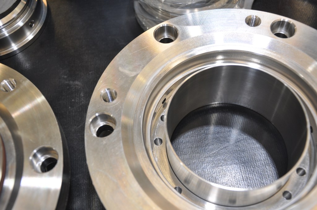 イーグルブルグマン社の社員は、定期的なお客様の訪問を通じて、硬度410 HBのスーパー二相ステンレス鋼製の被削材を扱うことになりました。その部品は、マザック縦型マシニングセンタで可溶性切削油剤を使用し、1つの被削材に穴深さ58 mm の穴を6 個開ける必要がありました。それまで使用していたドリルは被削材の中で度々破損するため、工具寿命が短いものでした。そのような状態に満足がいかず、オーエスジーの営業技術チームに相談が持ちかけられました。オーエスジーは使用状況を入念に調べ、イーグルブルグマン社に対してWDO-10D オイルホール付き超硬ドリル(直径6 mm)の使用を提案しました。