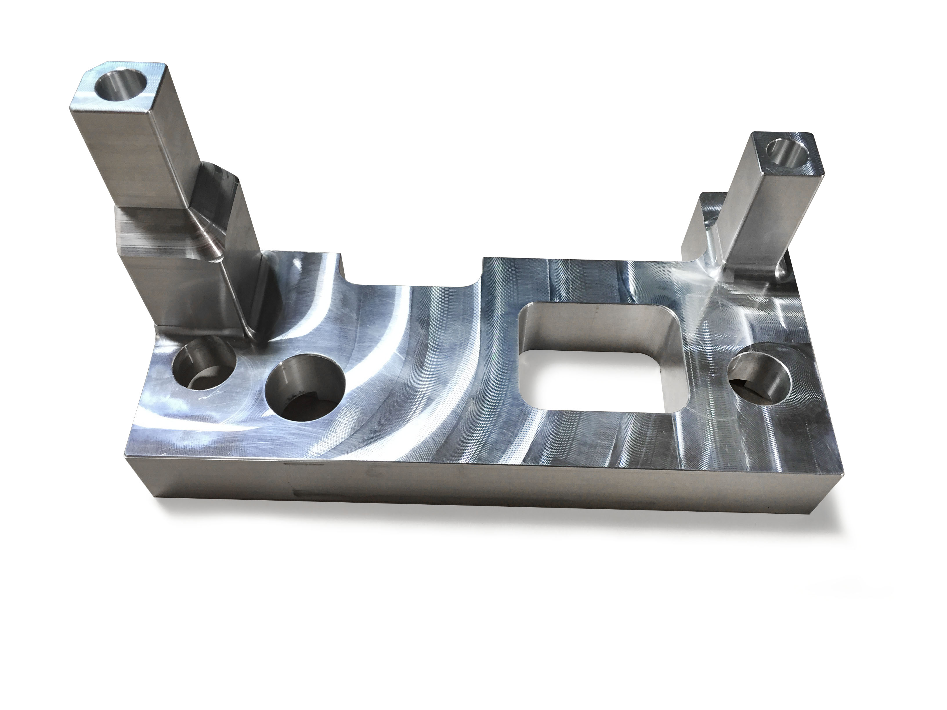 Micro Technology 社は、CAT 40 テーパ工具ホルダを備えたHAAS VF-3 という立形マシニングセンタを使用しています。機械加工されている部品は6061 アルミ合金で、この会社のニーズを満たす上での許容差の条件は+/- 0.002″です。Wright Jr. は、回転数3,000 rpm、120 ipm で作動し、切削深さが軸方向1.25″で半径方向1.2″の競合他社の正面フライスを使用して部品を加工していました。彼は、品質も精度も犠牲にすることなく生産性を高めようとしたのです。用途を入念に評価することで、Woody は、直径12 mm のアルミニウム用インサート(EDP# 7811013)を使うオーエスジーのPhoenix PRC インデキサブルラジアスカッタ(EDP# 7800404)を推奨しました。