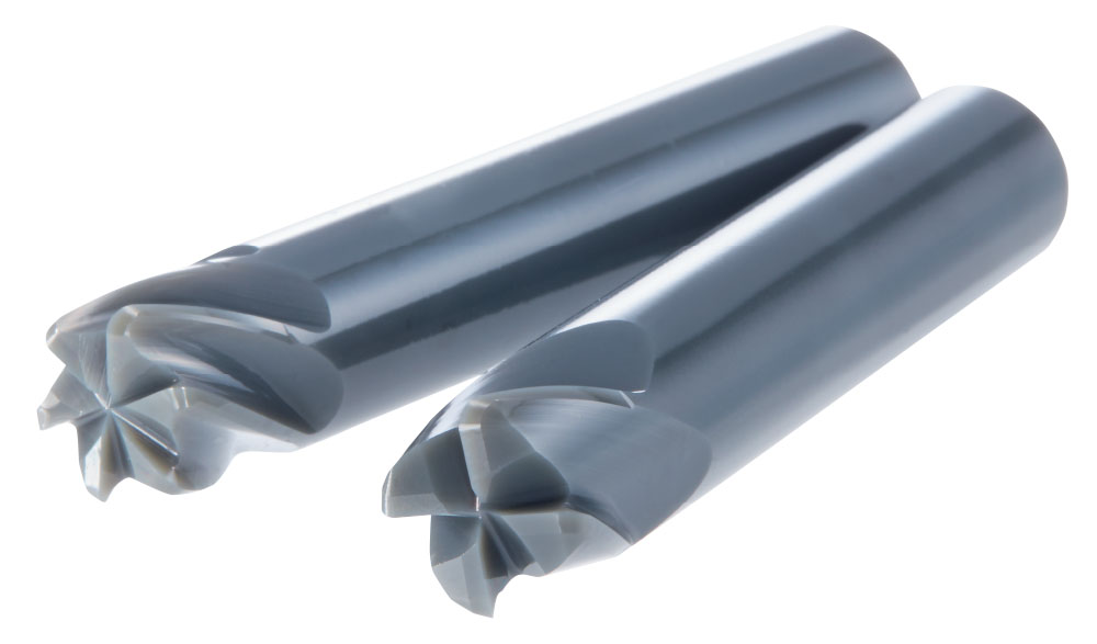 超硬エンドミルと比較して、セラミックエンドミルは高温域での硬度に優れています。しかし、抗折力に対しての耐性が、セラミックエンドミルは超硬エンドミルの半分以下であるため、不適切な切削条件で利用すると意図せず折損させてしまいがちです。不意の折損が生じる可能性を最小限に抑えるため、オーエスジーのCM-RMS は最適な溝形状を特徴とし、スムーズな切りくず排出を可能にしています。図1 と図2 に示すようにネガ形状が刃先剛性を高め、長寿命を実現します。CM-RMS は用途に合わせて4 枚刃、もしくは6 枚刃を選択できます。