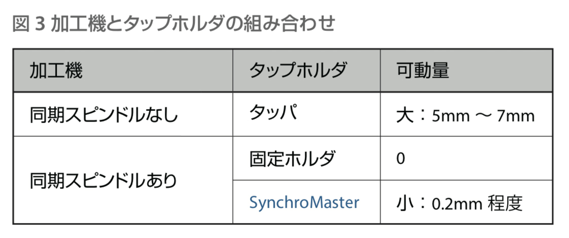 同期ずれを防止する為、加工機、タップホルダ、工具には最適な組み合わせが存在します。(図3)