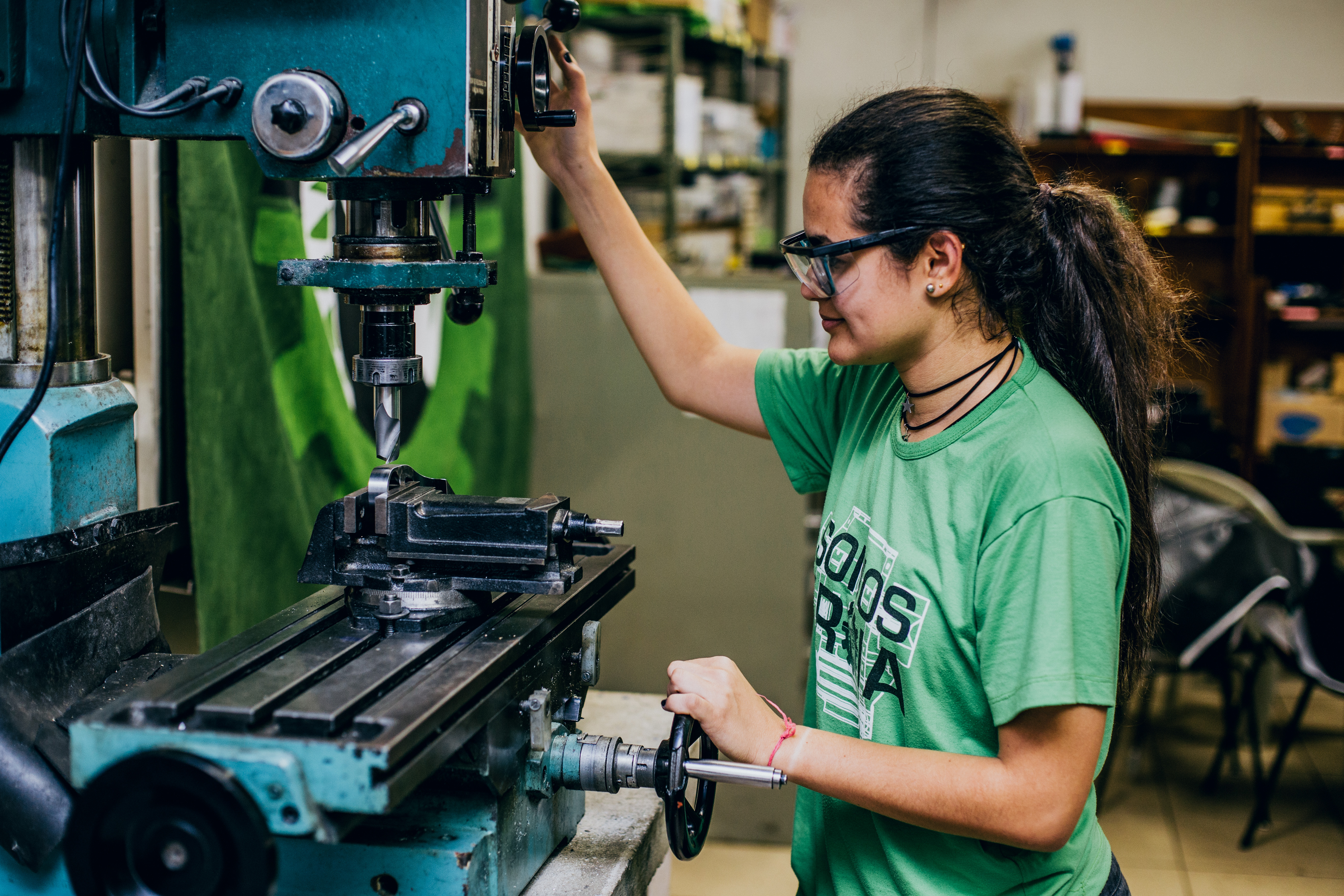 ロボットの構造部品の加工にオーエスジーのエンドミルを使用するTROIA のマーケティングリーダー、Anna Caroliny さん。