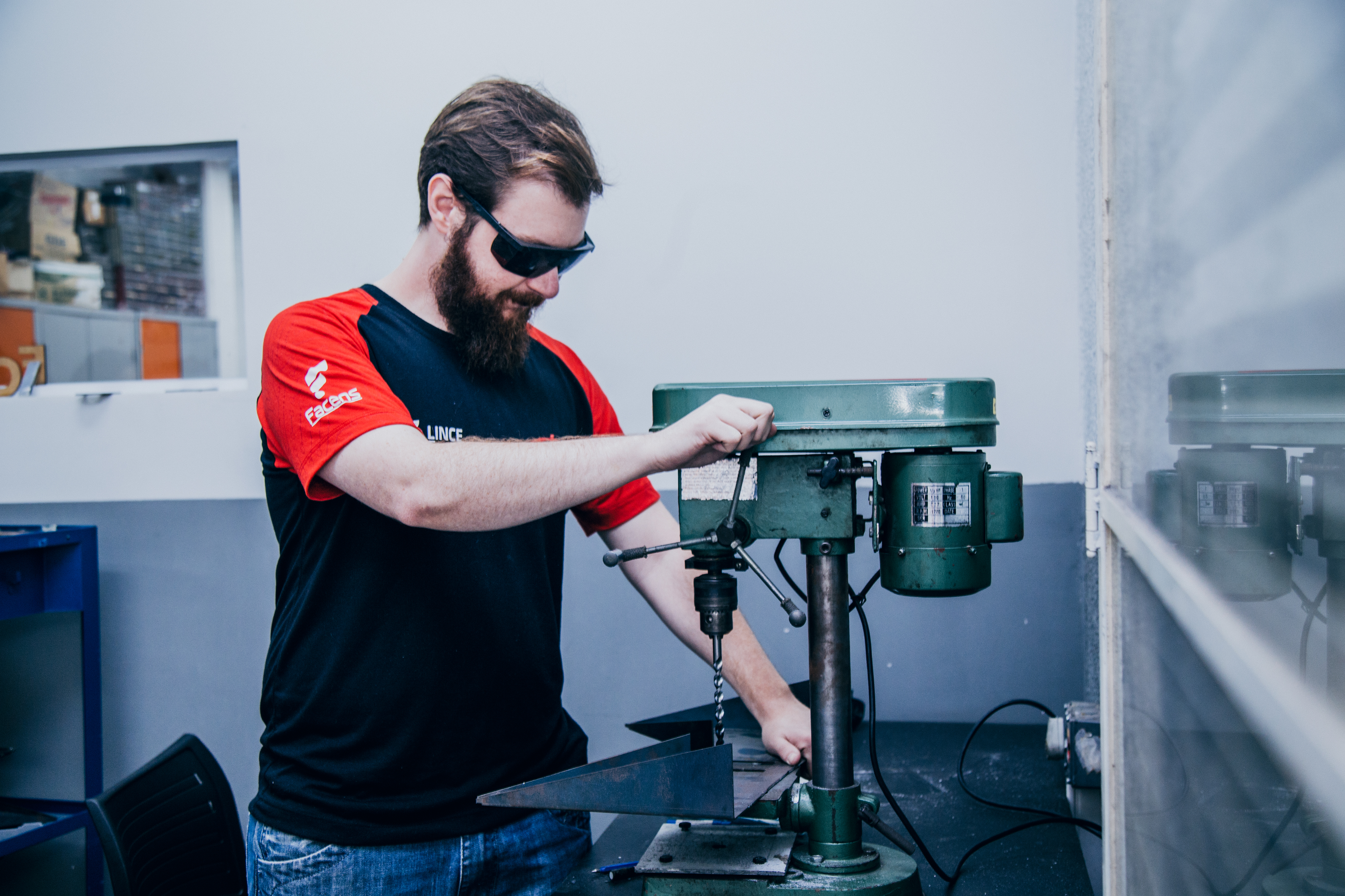 チームの車両を製作するための穴開けにオーエスジーのハンドタップを使用するB’Energy のLucas Maximiliano さん。