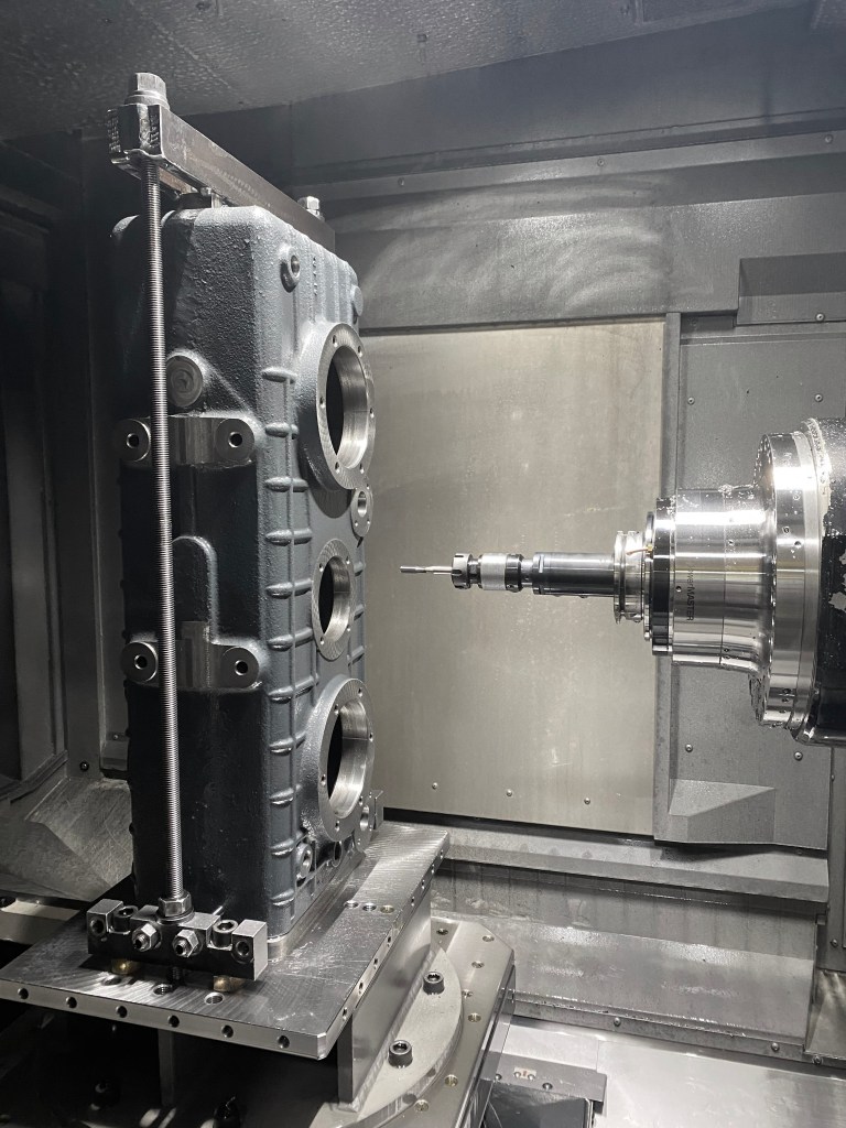 先日、OSG Canada西部地域営業マネージャーJason Kennedyは、ねじ加工における品質や工具寿命に不満を抱えていたNAMCOに、技術支援を提案しました。その加工は、NAMCOのダクタイル鋳鉄製スプリットシャフトPTOギヤドライブ用のギヤケースです。NAMCOは、およそ10年にわたり、年間500個を超える生産をしてきました。一つの部品に対して、深さ0.65インチでさまざまなサイズの穴加工とねじ加工を50カ所以上行っています。これらの部品は、DMG Mori NHX 6300の横形マシニングセンタで加工されています。