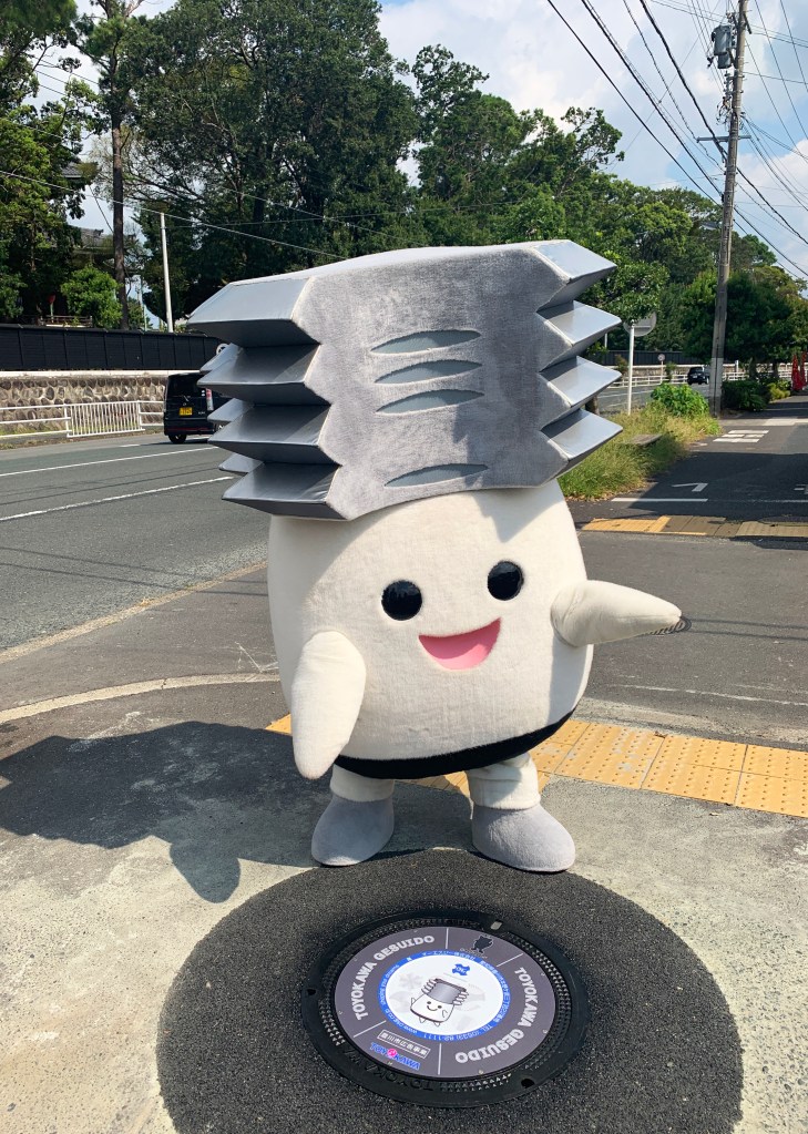 新しく製作されたマンホールふた広告と写真に写るタップくん。2019年10月1日、愛知県豊川市にて。愛知県豊川市はオーエスジー株式会社の本社の所在地です。また、日本在住の従業員の約半数にとっての地元でもあります。同社は豊川市に大きな誇りを抱いており、ブランドマスコットなどの有意義な取り組みを通じて、これからも故郷に恩返しをしていきたいと考えています。