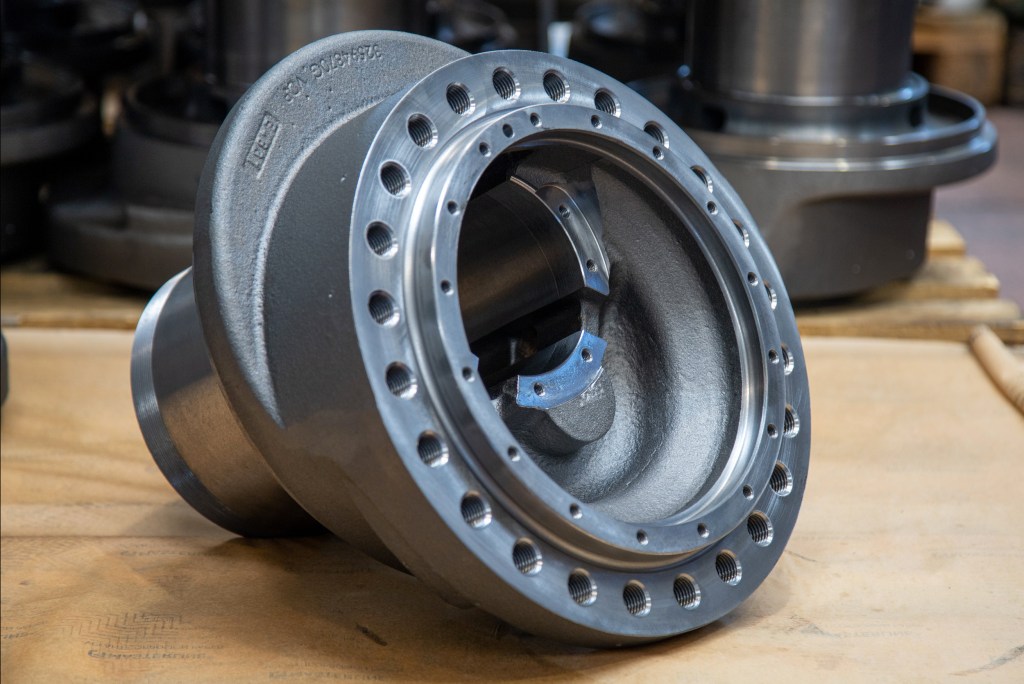 ダクタイル鋳鉄GS-600(FCD600)製のギヤボックスの部品。 各部品には、ねじサイズM24×3、精度等級6HX、ねじ立て長さ40 mm(通り)のねじ加工が30か所あります。