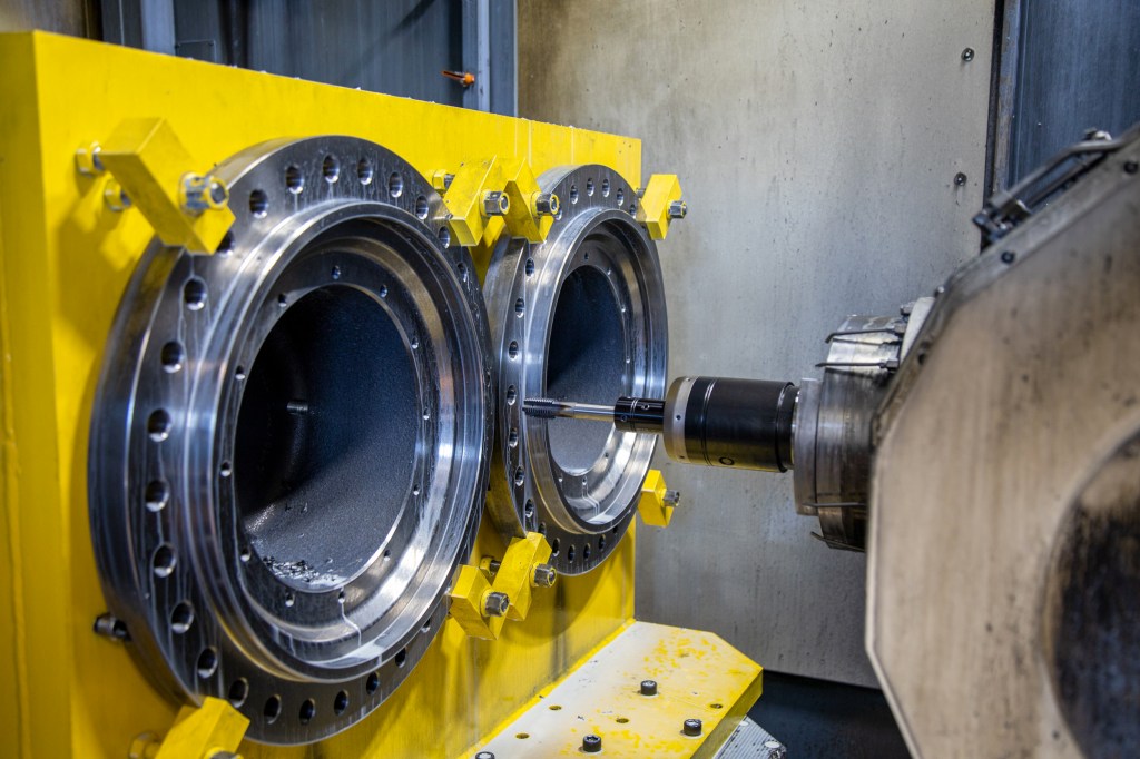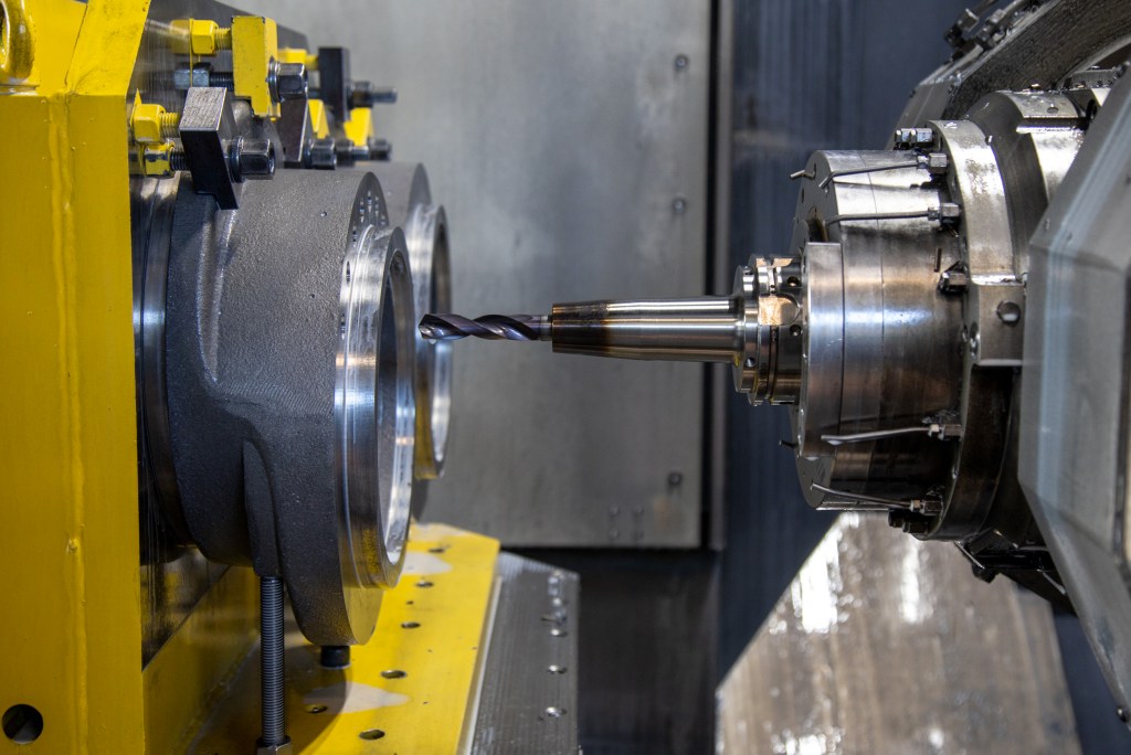 ギヤモーター用の遊星軸受ハブの加工に使用されるMPC社のMCM Tankシリーズ 横形マシニングセンタ(HSK-A100)