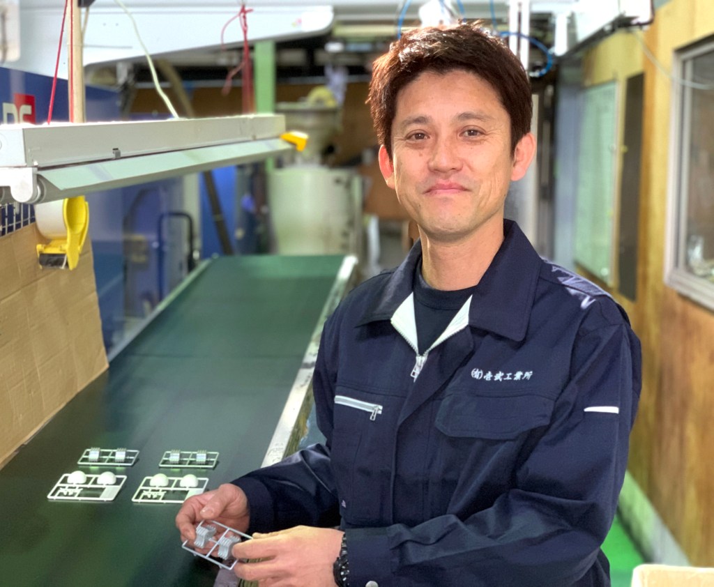 有限会社壱武工業所の代表取締役社長、竹口達也氏(愛知県西尾市に所在する同社の製造工場にて)。有限会社壱武工業所は、熱可塑性樹脂の射出成形の分野で40年以上にわたる実績をもち、自動車部品や電気器具などさまざまな製品を製造しています。
