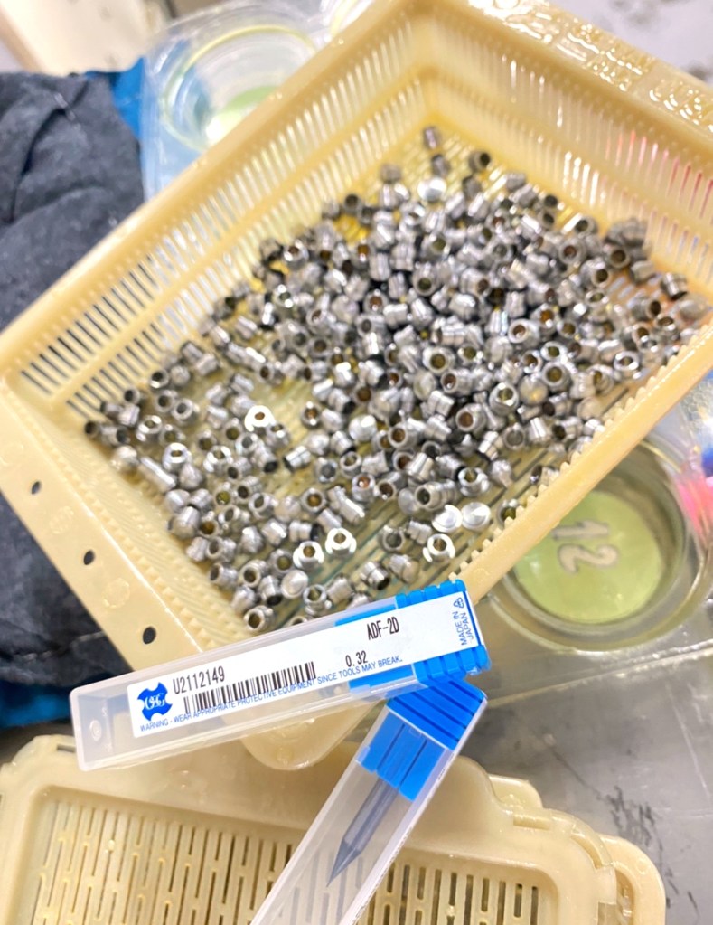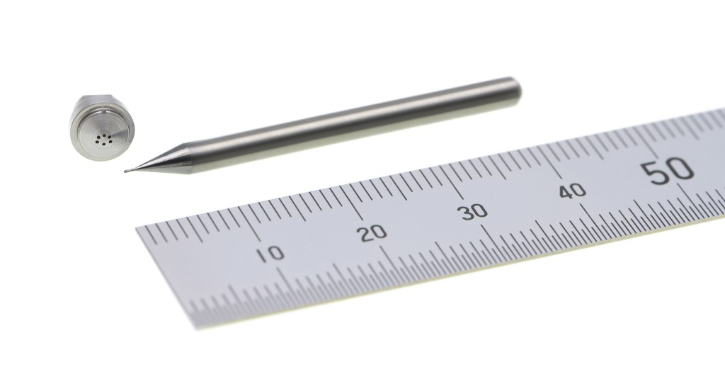一般的に、直径が25.4 mm未満の加工物は小型部品とされています。 その中でも部品の直径が0.5mm未満のアプリケーションは、マイクロマシニングに分類され、 軽量化と材料の削減により、ドリルで加工する穴もより小さくなっています。小型部品の加工では、工具の折損は一般的な懸念事項です。わずかな振動でも工具が折損する可能性があるためです。 さらに求められる穴の精度が厳しいため、小型部品の機械加工に使用される切削工具には、切れ味、高い表面品質、精度、および安定した性能が求められます。