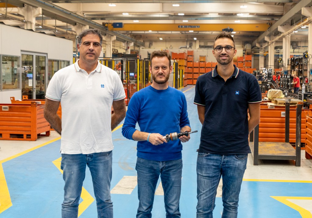 左から、OSG Italia エンジニアリングマネージャーAndrea Severi、Olimac社製造マネージャーAlessandro Martini氏、OSG Italia ピエモンテ地区営業担当Riccardo Costamagna。イタリアのクーネオ州マルガリータにあるOlimac社の工場にて。