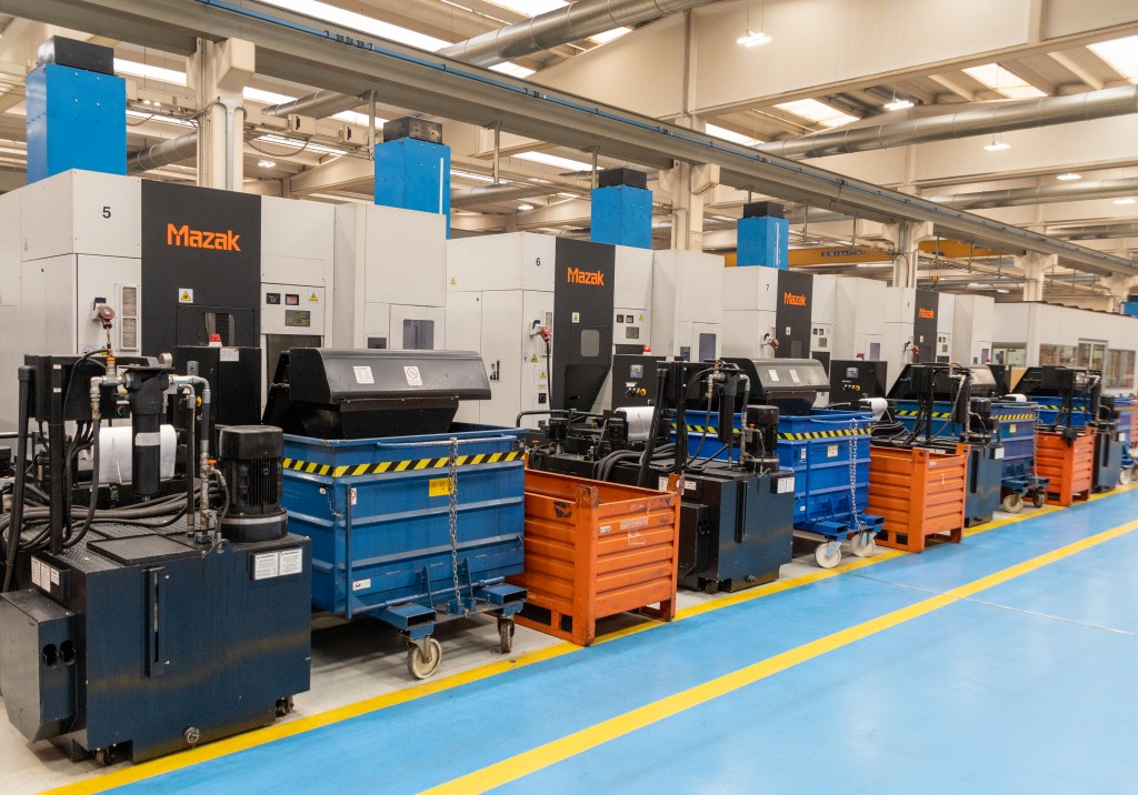 Olimac社の製造工場では合金鋼、鋳鉄、炭素鋼など、様々な材料を加工しています。ロットサイズの大小に関わらず対応する生産システムの最適化を図るため、多数のCNCマシニングセンタが設置されています。