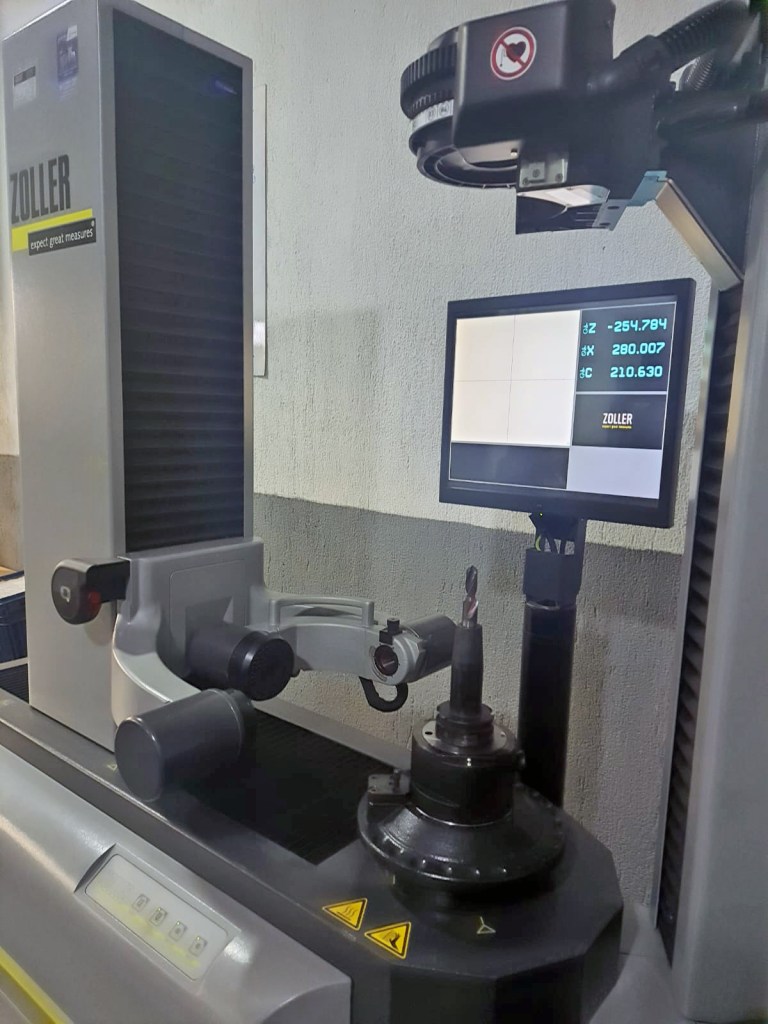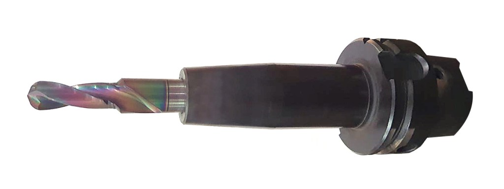 オーエスジーの2枚刃油穴付き超硬段付きドリルは、Zollerのツールプリセッタでプリセットされています。
