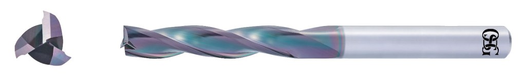 SEP-ELは、工具摩耗が進行しやすいスーパーエンプラの高品位な加工を実現する、オーエスジー最新のエンドミルです。第一の特長は、膜厚が約0.8μmのオーエスジー独自のDLC-IGUSSを採用したことです。DLC-IGUSSは、従来のDLCコーティングよりも膜厚が厚く、そして一般的な鋼用コーティングよりも薄いため、DLCコーティングの特長である切れ味と潤滑効果を維持しつつ、耐摩耗性を兼ね備えたスーパーエンプラ加工に適したコーティングです。