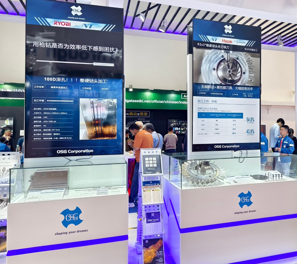 OSG中国は、最新の切削工具のイノベーションを展示するだけでなく、機械、CAD/CAMソフトウェア、ホルダ、切削油剤などの関連メーカやエンドユーザと協力し、中国における同社の幅広い業界ネットワークと高い信頼性を示しました。展示内容は、各協力企業の力強いサポートの成果として、大きな注目を集めました。多くの企業との共同展示を通じて、来場者の信頼をさらに深めるとともに、OSG中国の革新力と高度な技術力を印象づけました。