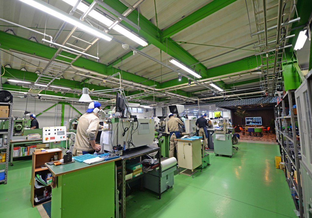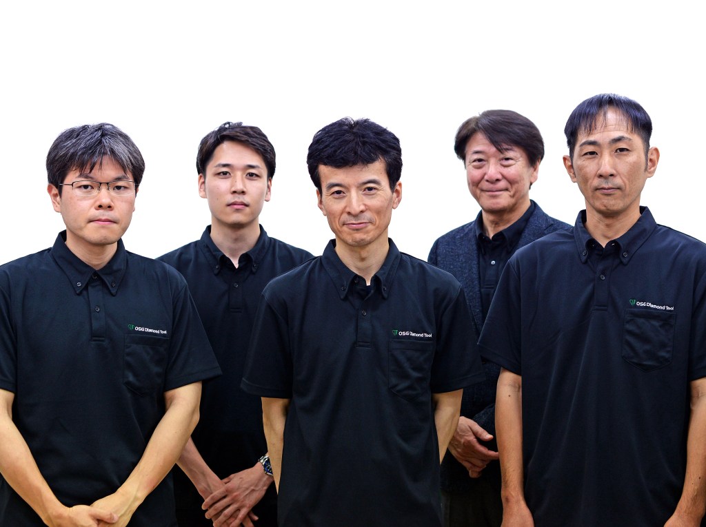 オーエスジーダイヤモンドツール社のマイクロダイヤモンドブランドを担当する生産チーム。神奈川県小田原市にある製造工場にて。