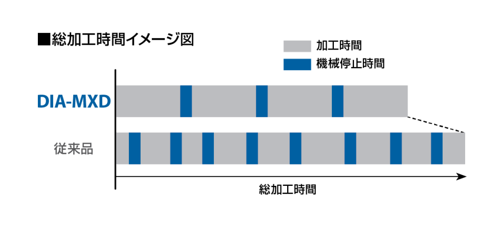 こうした課題への対応としてDIA-MXDでは工具寿命の安定性を重視し、2つの特長を備えています。